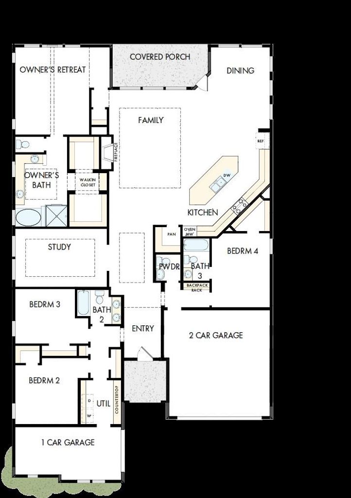 The Northcrest Retreat, a stunning one-story home nestled on a quiet cul-de-sac street in the boutique-style community of Redden Farms. With no backyard neighbor, this homesite offers privacy while still being moments from everything the community has to offer. The open-concept family, kitchen, and dining areas create a spacious central hub perfect for hosting guests or enjoying everyday life together. A wall of windows in the family room fills the home with natural light and frames peaceful backyard views. The kitchen is a showpiece, featuring abundant cabinetry, generous workspace, and seamless sightlines into the main living areas. Whether entertaining or preparing weeknight meals, this space was designed to impress. Each bedroom enjoys its own wing of the home, providing separation and comfort for family members and guests alike. The Owner’s Bath is a highlight, offering a spa-inspired retreat that blends function and relaxation beautifully.