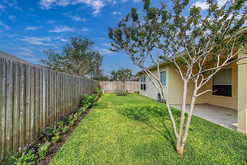 Beautifully maintained, light-filled, and spacious, this rare single-story gem offers a versatile open layout designed for modern living! Enjoy multiple flex spaces including a game room, office, and formal...perfect for entertaining or working from home. Freshly painted with soaring ceilings, an island kitchen. You will also find tile flooring, 6" baseboards & crown molding throughout, double-pane energy-efficient windows, and ceiling fans in every room. The split floor plan provides privacy, with the primary suite tucked quietly at the back of the home. A flex room between secondary bedrooms can serve as a playroom, craft area, or cozy retreat. Nestled on a peaceful cul-de-sac street in a small, quiet community. The backyard oasis features thoughtful landscaping, charming picket fence accents, a Rain Bird sprinkler system, and a covered patio with roll-down shade—ideal for relaxing or hosting. Low Tax rate. Move-in ready perfection—just unpack and start living your best life!