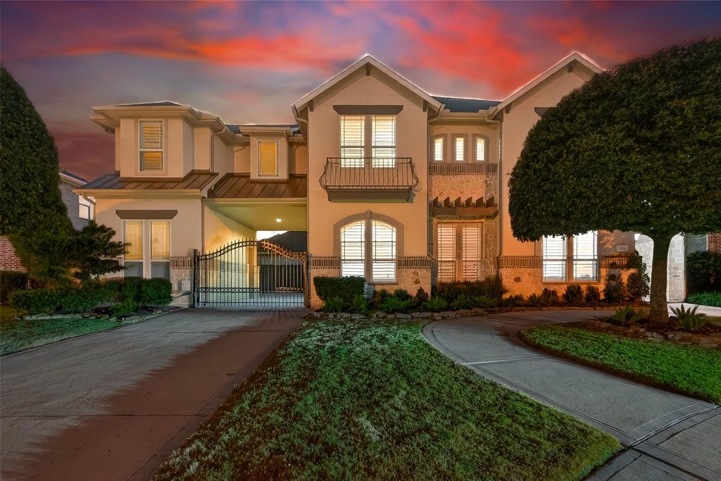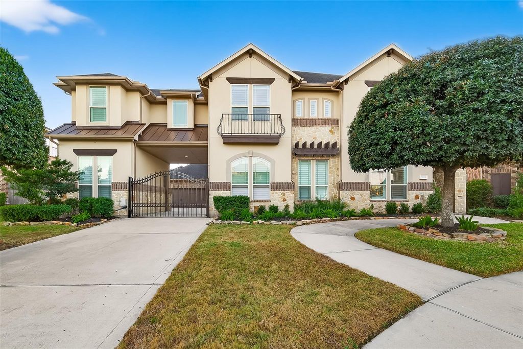 Fabulous TRENDMAKER home situated on a Cul De Sac across the street from walking trails. This beautiful 5 bedroom home includes hardwood flooring through out downstairs. The spacious island kitchen has granite counters, double ovens, pot filler, gas cooktop & large bright breakfast nook. The kitchen opens onto the den with high ceilings and a 2 story stone fireplace. All secondary bedrooms with en-suite bathrooms. Enjoy your evenings on the large covered patio with a pool, waterfall and firebowls. Three car garage with Gated driveway and porte cochere. Walking distance to all 3 Top rated Katy ISD Schools. Randolph Elementary, Adams Junior High and Jordan High School. This house is truly a must see!!