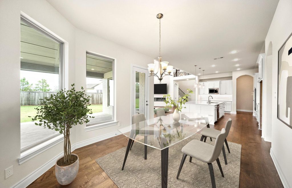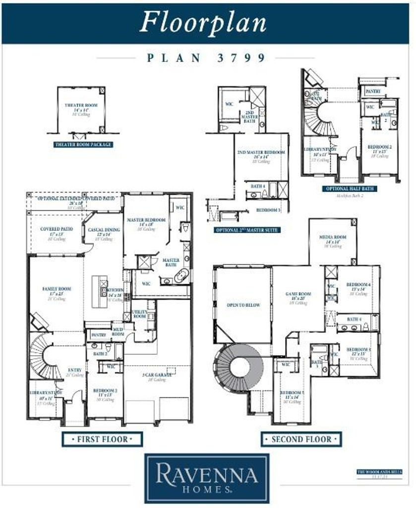 2-story home features an entry with 21' ceilings that extend past study. Oversized 17'x23' family room with 21' ceilings, corner fireplace, and full wall of windows. Open kitchen features 42" cabinets. Master bath includes a freestanding tub, separate shower, His & Hers vanities, and dual walk-in closets. Located upstairs are 3 bedrooms, 2 baths, media room and a game room. Extended covered patio overlooks the backyard.