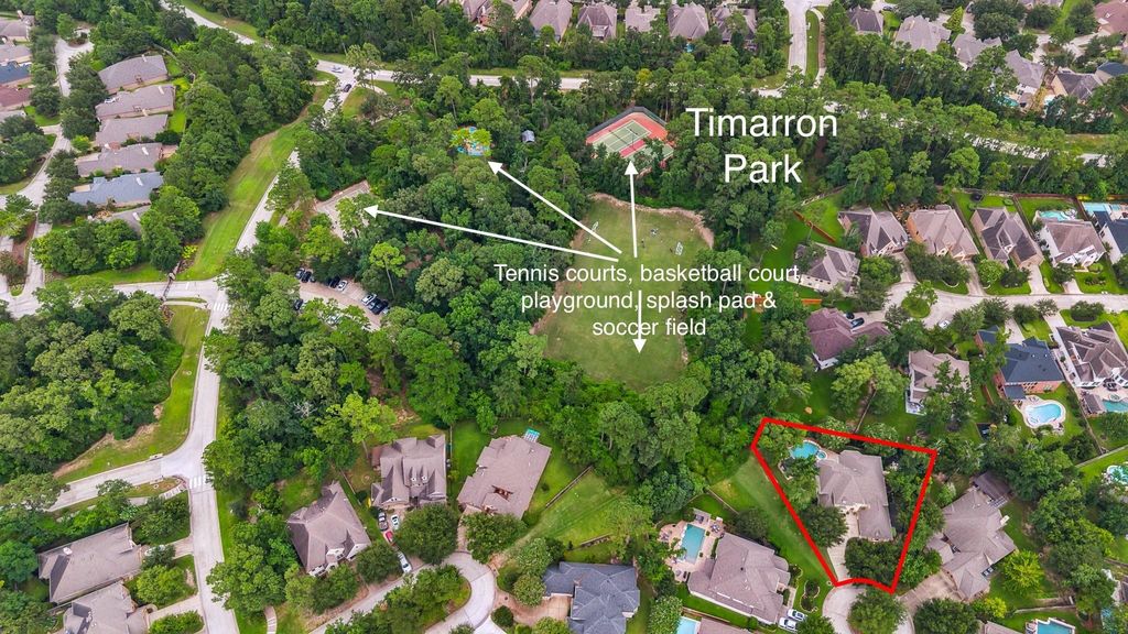 This exquisite Toll Brothers 4-bedroom, 4-bath home offers luxurious finishes & timeless beauty on an oversized (13,800 sq ft) lot. The 1st floor features a grand 2-story foyer & family room, private office, formal dining, chef’s kitchen, grand primary suite & full pool bath. The 2nd floor offers a huge game room, 3 bedrooms, 2 full baths & 2 walk-in attics. The home features approx $380K in improvements, most completed since 2020, including a resort-style heated pool/spa, covered pergola, fire pit, extensive decking & professionally landscaped yard (2021)–perfect for year-round entertaining! Other enhancements incl new roof (2022), wide-plank wood flooring (2024), exterior stucco/paint (2025), 1 ft ceiling beams (2025), stone fireplace surround & oak mantle (2024), carpet (2026), 2 water heaters (2025) & MUCH MORE! See FULL LIST in attach. Home backs up to Timarron Park & is walking distance to ponds, parks, nature trails, restaurants & shopping. Zoned to highly rated Tomball ISD