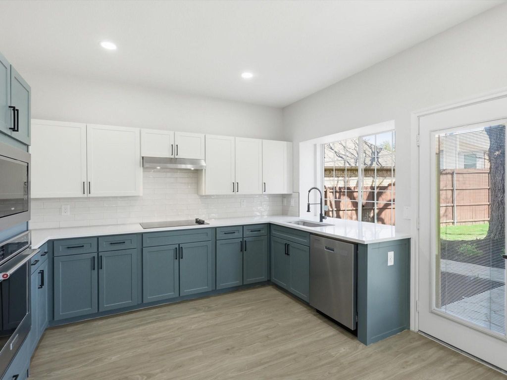 Gorgeous fully remodeled 4 bedroom 2.5 bath home with fresh paint throughout, new luxury vinyl flooring, and new carpet upstairs. The updated kitchen features quartz countertops, tile backsplash, and under-cabinet lighting, with a kitchen sink view overlooking the gorgeous backyard with new sod, mature trees and a covered patio. Bathrooms have been fully updated with a beautiful freestanding tub and remodeled primary and secondary showers. New lighting, plumbing fixtures, and hardware throughout. The living room features a stunning stone fireplace next to custom wood shelving with built-in lighting. Enjoy views of Indian Creek Golf Club across the street.