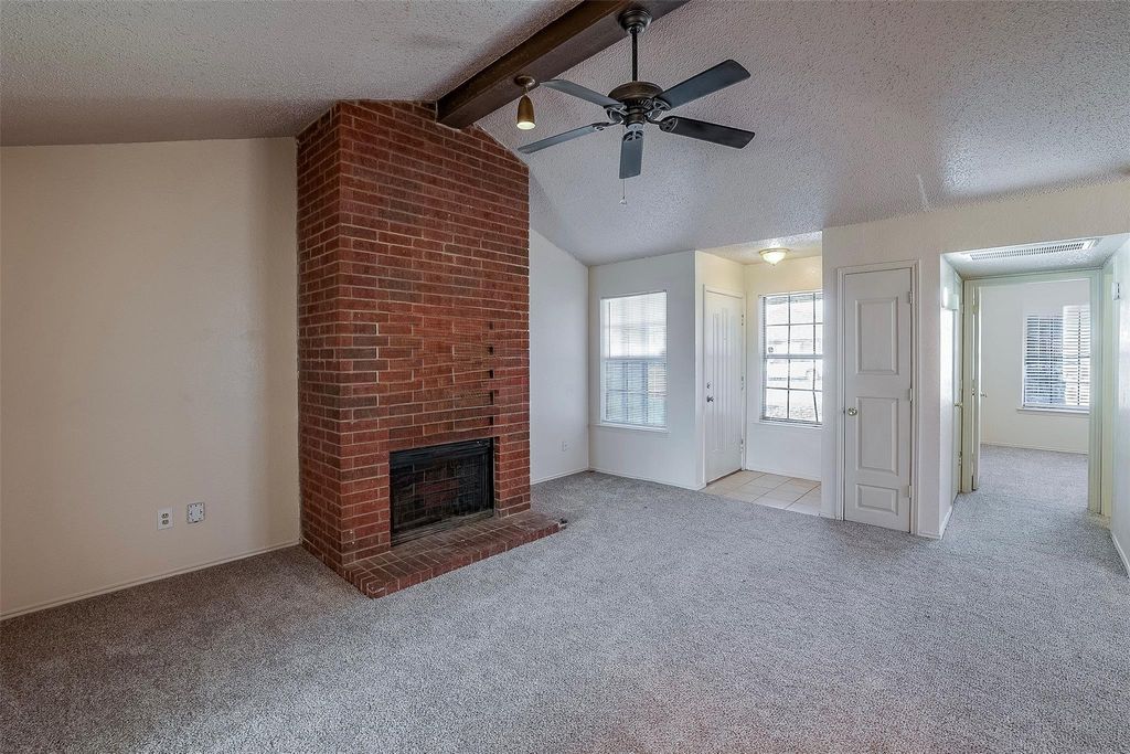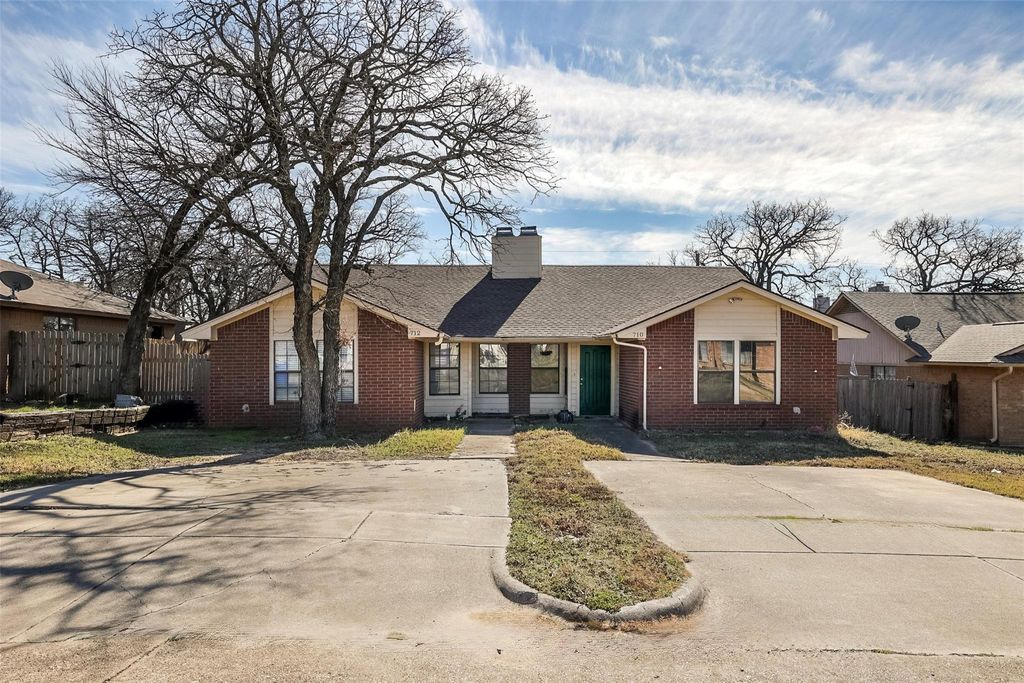 Affordable, comfortable home ownership starts with this 2 bedroom, 2 bath half of duplex offering fresh paint & recent flooring. The large living area with high ceiling, ceiling fan, and fireplace is open to the sunny dining room and galley kitchen lined with cabinets and just steps to washer, dryer area. The kitchen exit opens to a small covered porch with storage closet and generous sized, privacy fenced backyard. There are numerous large trees front and back of home. Both bedroom are equally large with ceiling fans and both offer direct access to a connecting bath. There is parking for two cars and the privacy of the cul de sac location.