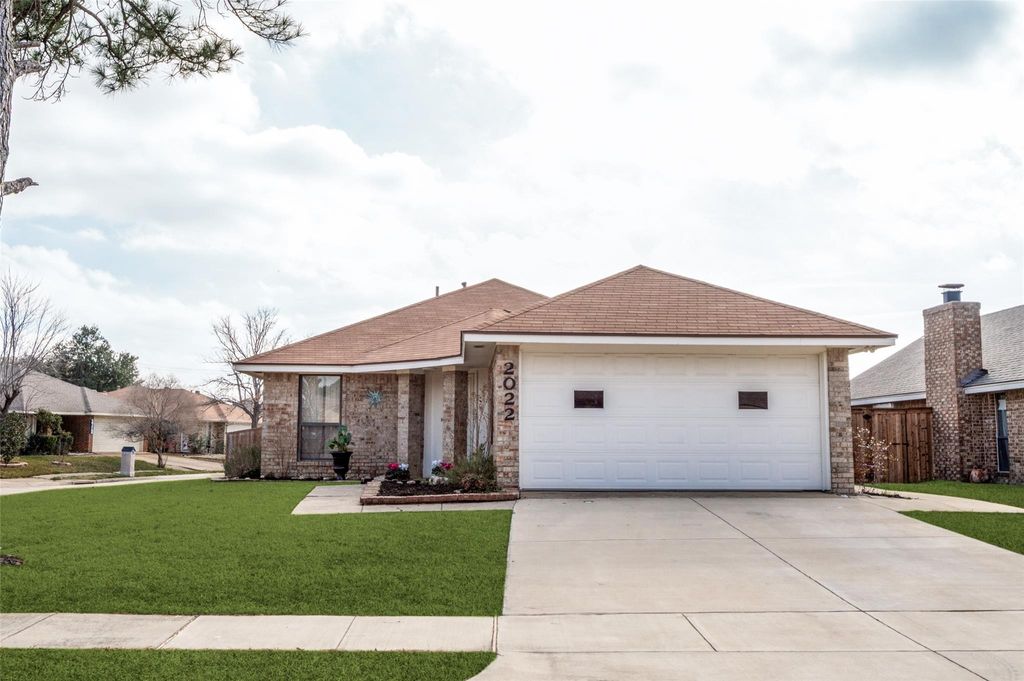 Perfect house on one of the largest corner lots in the subdivision. Superbly maintained home. Enter the front door and walk in to a huge open living and dining space with vaulted ceilings and a cozy brick fireplace with gas logs ready to go. Dining room has bay windows with cushioned seating and lots of natural light. Notice the spacious kitchen anyone would be proud of with updated glass tile backsplash, granite countertops and cabinet space galore. Kitchen island is movable, allowing for an eat-in kitchen if desired. There's even a perfect window over the kitchen sink. The dreamy oversized master suite has high vaulted ceilings, wonderful lighting, walk-in closet and an attached super large spa-like bathroom with double sinks, space for vanity bench, stand-up shower and skylight. Updated lights, fixtures and faucets throughout. There is a cute patio and sideyard with a nice size backyard larger than most in neighborhood. Thoughtful landscaping all around home will bloom in spring! Two car garage with direct access to house and plenty of driveway for additional parking. Washer-Dryer-Refrigerator also included with acceptable offer. NEW ROOF 2021!! Desired area with lots of parks, walking trails, and recreation nearby. Close to all the conveniences you will need. What a find! SELLER NOW OFFERING FLOORING ALLOWANCE to buyers.