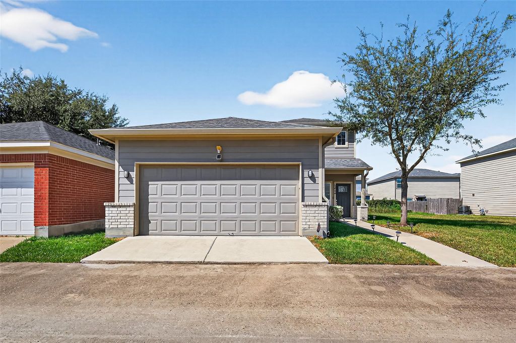 Welcome to this beautiful modern home a move-in ready 3br, 2.5ba this home was designed for comfort and style. Enjoy lofted high ceilings, abundant natural light, and an open-concept layout perfect for entertaining. The kitchen shines with granite countertops, a large island, glass subway tile backsplash, stainless steel appliances, and plenty of storage. The first-floor primary suite offers two large walk-in closets, a soaking tub, and a separate shower. Upstairs features 2 secondary bedrooms joined by a Jack & Jill bath. Energy-efficient with LED lighting, double-pane windows, central AC, and gas heat. 2 car attached garage, fenced backyard! Great location easy access to the Beltway, Low tax rate & Minutes from Pearland Town Center! A MUST SEE!