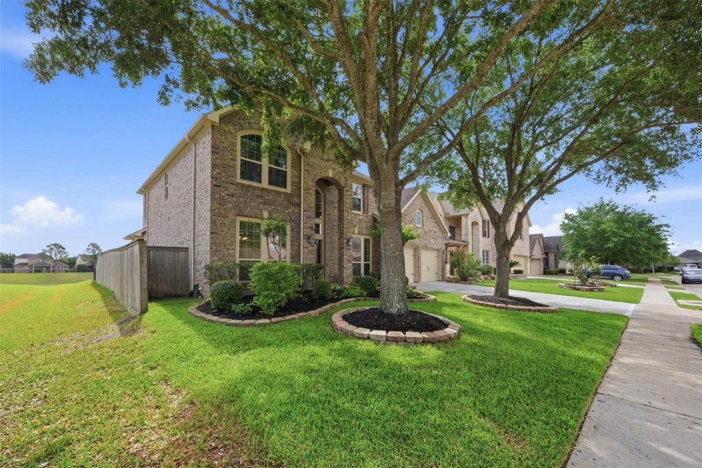 A formal dining room and dedicated office upon entry set a purposeful tone in this exceptional Pearland home. The living room impresses with soaring high ceilings and a cozy corner fireplace, while the modern kitchen shines with an island, bar seating, and a breakfast nook, flowing naturally into the dining room and main living space. The primary suite offers a luxurious ensuite bath with dual sinks, a soaking tub, a walk-in shower, and a walk-in closet. Upstairs, a spacious loft connects to a bonus room, and three additional bedrooms provide all the flexibility you need. Outside, the fully fenced yard features a patio and generous greenspace. Pearland's dining scene delivers close to home. Hash Kitchen brings an unbeatable brunch vibe, Good Vibes Coastal Kitchen serves up fresh seafood with great atmosphere, and KNP Social adds lively cocktails and live music to the mix. Pearland Town Center puts shopping, dining, and entertainment in one convenient destination just minutes away.