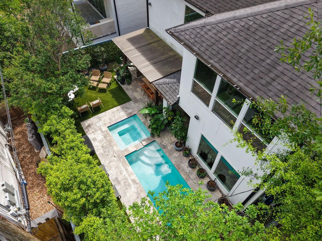 Stunning 5 bed, 5.5 bath residence in highly sought after Southgate with a private pool & thoughtfully designed for both everyday living & entertaining. 1st floor features a private study, formal dining room that doubles as a sitting room, open concept living space offers views of the backyard & flows into the gourmet island kitchen, spacious breakfast room, butler's pantry, walk-in pantry & first floor guest bed with ensuite bath. Upstairs, the primary suite includes custom built-in shelves, spa inspired bath offers dual vanity sinks, soaking tub, glass enclosed shower & dream-worthy walk-in closet with dual entry, spacious game room with a full wall of custom built-in cabinetry & 3 additional generously sized bedrooms each with ensuite baths. Ideal backyard with covered patio, outdoor kitchen, turfed lawn & pool with integrated spa. Perfectly located blocks from Rice Village, Rice University & minutes from the Medical Center. This home offers the best of convenience & refined living.