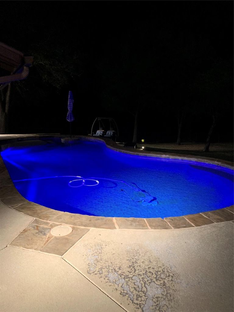 Discover this stunning 3-bedroom, 2-bath home featuring a spacious open floor plan and an inviting pool. Located along a beautiful Bosque riverfront, the property offers direct access via concrete steps—ideal for fishing and kayaking enthusiasts. Surrounded by mature pecan, pear, and pomegranate trees, along with native mustang grapes, it creates a vibrant, natural setting that attracts deer and local wildlife. Nights here are truly special, with breathtaking starry skies.