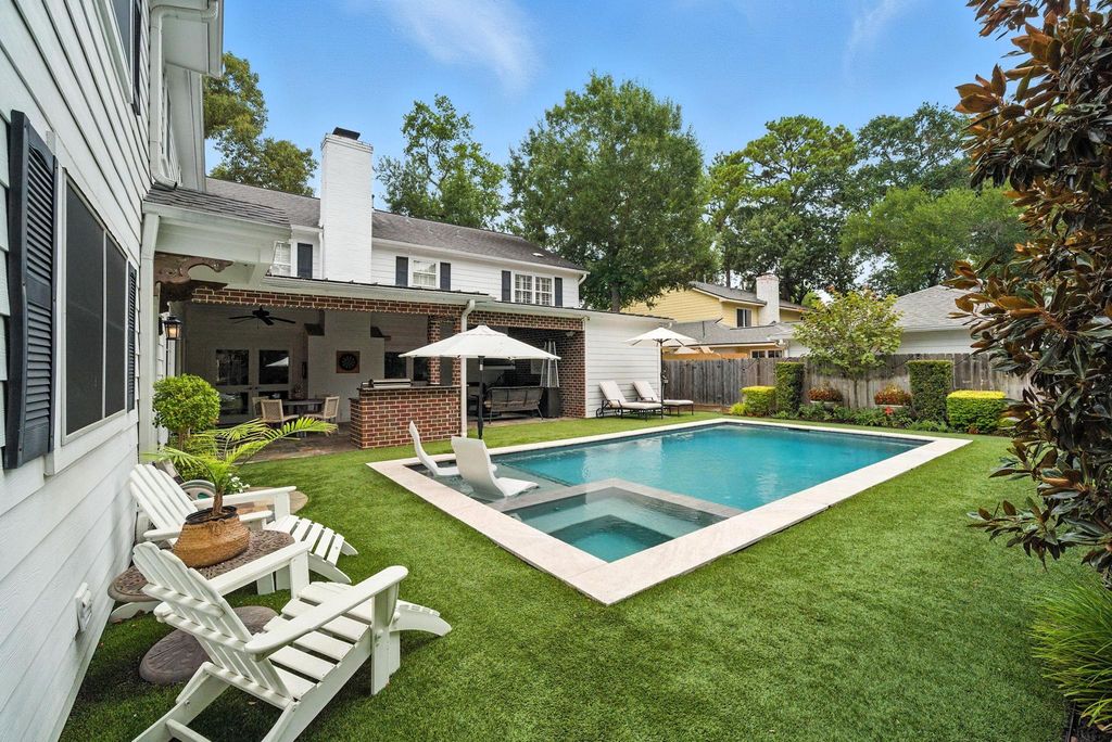 Experience luxury living in sought-after Wilchester on a picturesque street—this updated 6-bedroom, 4-bath home offers elegance & comfort throughout. The two-story layout features first-floor living w/ hardwood floors, expansive windows, a fireplace, & open flow to the backyard oasis. Entertain in the remodeled kitchen boasting an oversized island, double ovens, gas range, breakfast bar, & spacious walk-in pantry. The first-floor primary suite is a private retreat w/ an expansive walk-in closet & spa-like ensuite bath w/ dual sinks & walk-in shower. Additional bedrooms, renovated bathrooms, & a versatile flex space add to the home's appeal. Enjoy outdoor living w/ a private fenced yard, heated pool, hot tub, covered patio, summer kitchen, & low-maintenance turf. An oversized 2-car garage provides ample storage. Benefit from proximity to I10, Energy Corridor, top parks, restaurants, shopping, & award-winning schools, plus community amenities including a pool for relaxation & recreation.