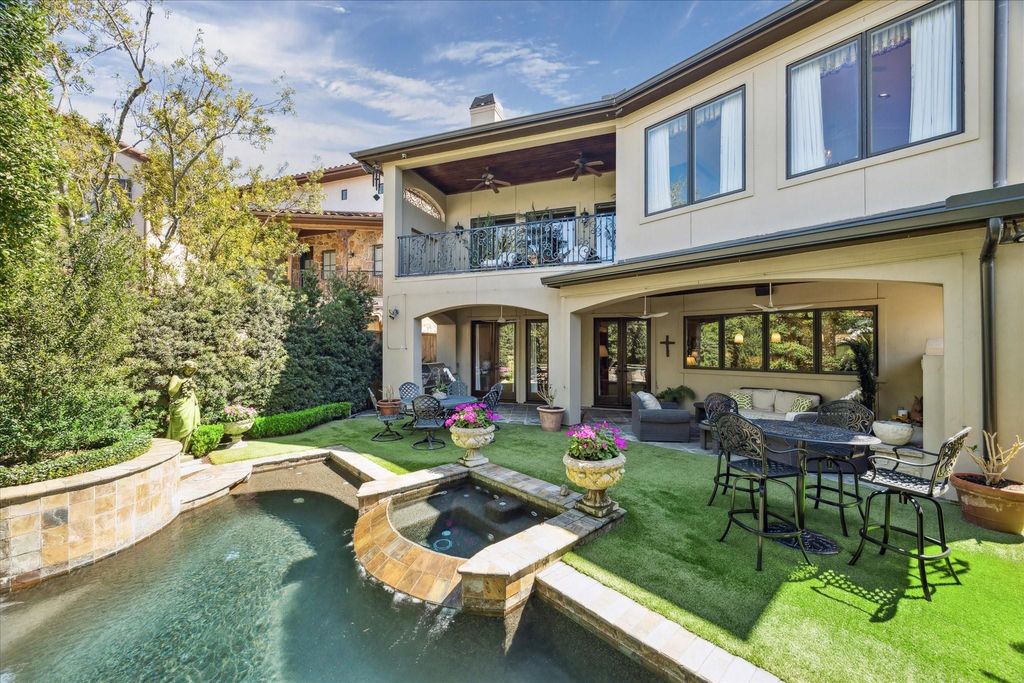 Nestled in the heart of Afton Oaks, this exquisite 4-bedroom, 4.5-bath home blends timeless elegance with modern luxury. Iron double doors welcome you into a tiled grand foyer, where a sweeping curved staircase leads to the second and third floor levels. A handsome paneled study with fireplace and the dining room flank the entry hall. The double-height great room features a soaring limestone fireplace, seamlessly connecting to the gourmet kitchen with a large island, premium appliances, and a brick accented wine room. The spa-like primary suite boasts a coffee bar, a lavish bath, and access to a covered balcony overlooking the resort-style pool and spa. An elevator services all three levels, including a gameroom and bonus room on the third floor. Entertain year-round on the covered loggia with a summer kitchen and outdoor fireplace. Professional landscaping is enhanced by elegant lighting. An exceptional home with an ideal location in one of Houston’s most coveted neighborhoods.