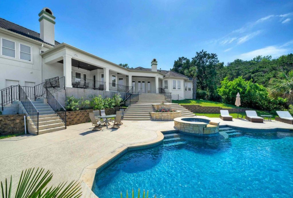Set on 2.3+ acres in the gated community of original Rob Roy, this property offers the perfect blend of privacy and timeless Hill Country charm. Surrounded by mature trees and meticulous landscaping, the home is a true retreat, offering a tranquil, private oasis just minutes from the city. Spanning 4,149 sq ft, the residence features 4 bedrooms, 4 full baths, and 2 half baths (including one dedicated to the pool area). The open-concept layout welcomes you with Hill Country views and seamless integration between indoor and outdoor spaces. High ceilings and abundant natural light enhance the home’s warmth. The main level is designed for both comfort and style. The primary suite offers direct pool views and a spacious bathroom, creating a peaceful retreat. A dedicated office just off the foyer provides the perfect space for remote work or quiet reflection. The kitchen and breakfast area are designed for gathering, flowing into a family room ideal for everyday living and entertaining. Each secondary bedroom includes its own en-suite bath and access to a separate living area—ensuring privacy and comfort for guests or family. Step outside to enjoy 700+ sq ft of covered outdoor living, where a negative-edge pool with cascading waterfalls seamlessly blends into the natural landscape. An outdoor shower adds to the experience. Thoughtful design details abound: 8-ft doors, two fireplaces, a wet bar, central vacuum system, and an instant hot water recirculation pump. Recent upgrades include fresh stucco and paint, new windows with a transferable lifetime warranty, two tankless water heaters, and a re-plastered pool with updated equipment. Located in the coveted Eanes ISD with one of the lowest tax rates in the Austin area, this is an extraordinary opportunity to own a Hill Country estate in one of Austin’s most desirable neighborhoods.