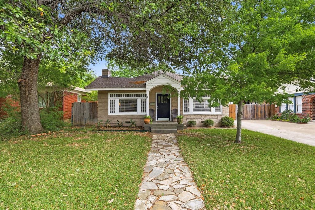 Nestled beneath mature trees in the highly sought-after Mistletoe Heights neighborhood, this charming home blends timeless character with an unbeatable Fort Worth lifestyle. From the inviting curb appeal to the thoughtful layout, every detail reflects comfort, warmth, and everyday livability. Inside, natural light fills the home through expansive windows, highlighting original hardwood floors and a welcoming living space anchored by a cozy fireplace. The kitchen offers both style and function with granite countertops, stainless steel appliances, a gas cooktop, and a breakfast bar, all opening seamlessly into your dining room. Your kitchen sink is set beneath a window bringing in soft natural light and a connection to the outdoors. The dining space is surrounded by a wall of windows, creating a bright and inviting setting for gatherings. The primary suite offers a comfortable and spacious retreat with room for a sitting area and direct access to your backyard, including an ensuite bath featuring dual vanities, a soaking tub, and separate shower. Step outside to a private backyard complete with a expansive deck and lush green space—perfect for relaxing or entertaining. A detached garage adds convenience, additional storage along with a workshop! From here, the best of Fort Worth is right at your fingertips. You’re just minutes from downtown Fort Worth, University Park Village, and both the Magnolia and Medical Districts, and within walking distance to the Trinity Trails for quick access to local shops and dining.