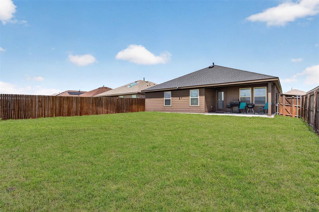 Welcome home to this comfortable 3 Bedroom, 2 bath home with a spacious 2-car garage. Built in 2021 and designed with a modern open-concept floor plan perfect for today's lifestyle. The bright and inviting interior has been freshly painted and features band-new flooring, creating a clean, move-in ready feel. The kitchen with granite countertops opens to the living area making everyday living and entertaining simple and enjoyable. Step outside to enjoy a covered patio and a good size backyard designed for easy upkeep--perfect for relaxing in the evenings and summer BBQs. This home also includes energy-efficient features such as Low-E windows, radiant barrier and tankless water heater, helping keep utility costs more predictable. Conveniently located within walking distance to North Forney High School, Smith Intermediate School, the new HEB grocery store as well as a growing shopping area. This home offers both comfort and convenience in a rapidly developing community and is ready for its next owner to move right in and enjoy. Community Amenities include Swimming Pool, Park, and Walking Trails. Financing Programs available for First-Time Buyers and is Eligible for USDA Loan. Call Elena at 214-724-6039 for details.