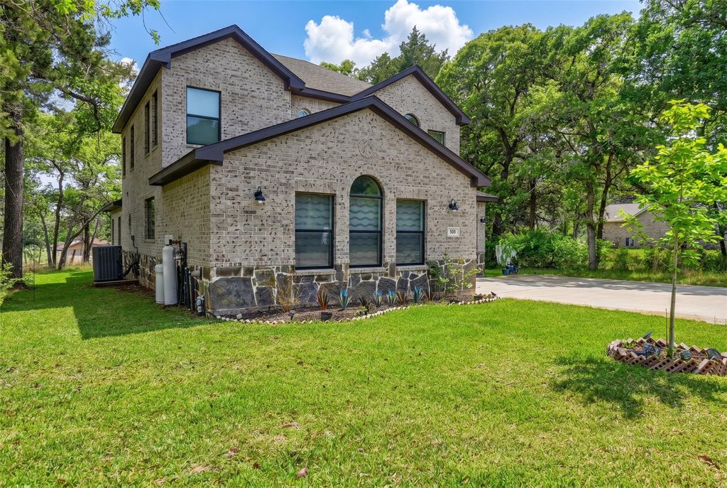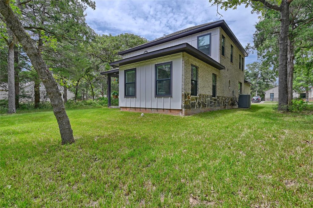 This custom-designed home nestled among mature trees in the Falls Golf Community offers an ideal blend of privacy and lifestyle. The residence features 3 bedrooms and 3.5 baths, including an ensuite bathroom in each of the primary bedrooms on both levels and a dream kitchen with farmhouse sink and pull out storage. Enjoy relaxing evenings or family game nights in the upstairs living area, complete with a convenient kitchenette. Step outside to the covered back porch for serene outdoor time, surrounded by nature. Additional highlights include a whole-house water softener, motorized blinds, no carpeted areas, ample storage spaces under stairs and closets, ceiling fans in all rooms and living areas, many custom light fixtures and windows, sprinkler system, and hurricane clips. The home is 2235 sq ft per its architectural floor plans, which the owner believes to be more accurate than the Appraisal District dimensions. Buyer to verify measurements. Listing agent is related to seller.