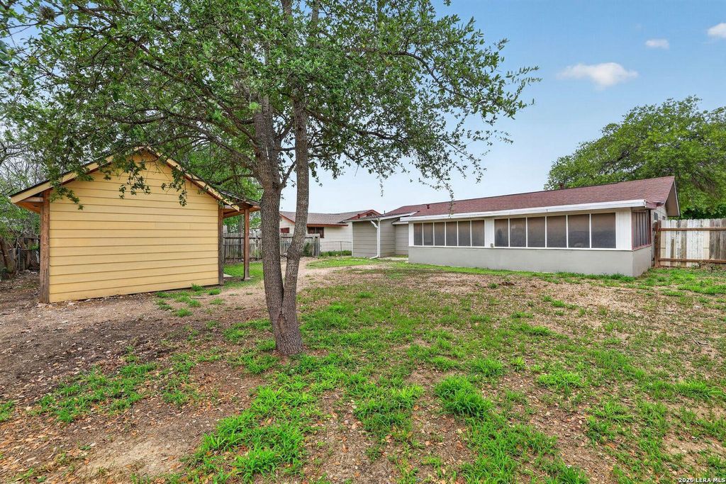 Welcome to this updated single-story ranch home offering functional space and exceptional outdoor living. Inside, you'll find wood-look tile flooring throughout the primary living areas, combining style and durability for everyday living. The beautifully updated kitchen features clean white cabinetry, a classic subway tile backsplash, stainless steel appliances, and granite countertops. Enjoy multiple dining options with an eat-in breakfast area, breakfast bar, and a separate formal dining space. The spacious primary suite includes a walk-in closet and a full bathroom with double vanity and granite counters. Additional highlights include an updated guest bathroom and a large indoor utility room with washer and dryer connections. Step outside to a long, screened-in porch-ideal for relaxing year-round-and take in the fenced backyard. A nice feature of the property is the impressive detached storage building, complete with a covered front porch and custom siding-perfect for hobbies, sto