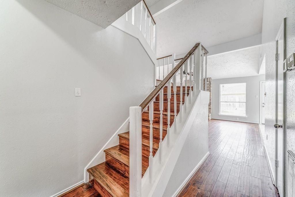Fall in love with this tranquil 3-bedroom, 2.5-bathroom home in Hunters Green, featuring an eye-catching brick front, covered front porch, high ceilings, wood flooring, open great room with brick-surround fireplace, formal dining room, and spacious backyard with a patio. Try new recipes in the lovely kitchen, complete with granite countertops, tile backsplash, gas cooktop and oven, breakfast bar, walk-in pantry, and dining nook. The comfortable primary suite boasts a large walk-in closet, dual vanities, soaking tub, and separate shower. Situated off I-69, Hwy 6, and the Sam Houston Tollway, residents are a short drive from Sugar Land Town Square and the Missouri City Shopping Center. Mere minutes from community parks, sports fields, scenic lakes, and walking trails. Zoned to Fort Bend ISD.