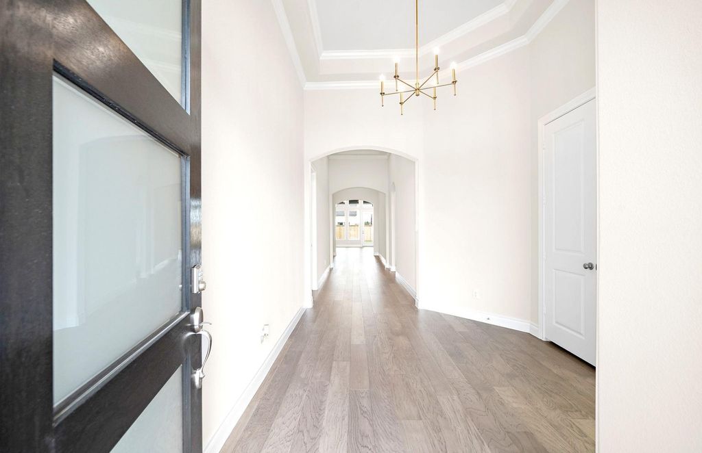 1-story home features an extended entry with 13’ ceilings that leads into a spacious 15'x22' family room with 12’ ceilings and full wall of windows. The open kitchen features 12' ceilings, 42" cabinets, built-in stainless-steel microwave plus oven, and separate gas cooktop. The master bath includes a freestanding tub, separate shower, His & Hers vanities, and an oversized walk-in closet. Home is complete with a 3 car garage and a 15’ wide covered patio that overlooks a spacious backyard.
