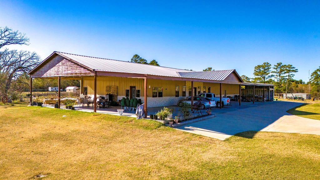 Exceptional custom-built barndominium offering quality craftsmanship, scenic hilltop views & incredible versatility. This single-story feature high ceilings, upgraded insulation, custom wood cabinetry, designer tile flooring & countertops, plus a spacious walk-in pantry and luxurious primary suite with oversized walk-in closet and spa-style bath. Built for both comfort and function, the property includes an impressive shop/garage ideal for car collectors, workshop use, home business, or additional storage. Dedicated home office overlooks the shop/garage area through an interior viewing window, creating an ideal live/work setup. Country living with approximately 25’ x 62’ and 20’ x 149’ covered porch areas perfect for entertaining and taking in beautiful Texas sunsets. Conveniently located with easy access to major highways, Sam Houston State University, shopping, dining, and local amenities. Additional acreage available.
