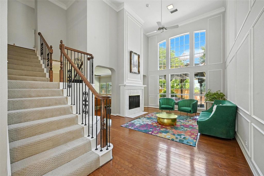 Come see this GORGEOUS home in Hills Creek addition of Stonebridge Ranch. Neighborhood features scenic walking trails along this stunning golf club community. Vaulted cathederal ceilings with 5 bedrooms, 4 living areas, 2 dining areas, built-ins galore, real wood craftsmanship, marble, a pool with spa, plenty of extra yard, upstairs deck balcony with exterior spiral staircase, huge kitchen with wine fridge, double oven, granite counters and huge laundry room with built-ins. 2 grand fireplaces with wainscotting throughout. Mother in law suite down and the 5th bedroom can be used as a workout room, additional bedroom, flex space. Home has  full renovations of all bathrooms, has a newer tankless water heater, and brand new electrical panel. Added storage room in the garage. Luxury finishes throughout!! You don't want to miss this home!