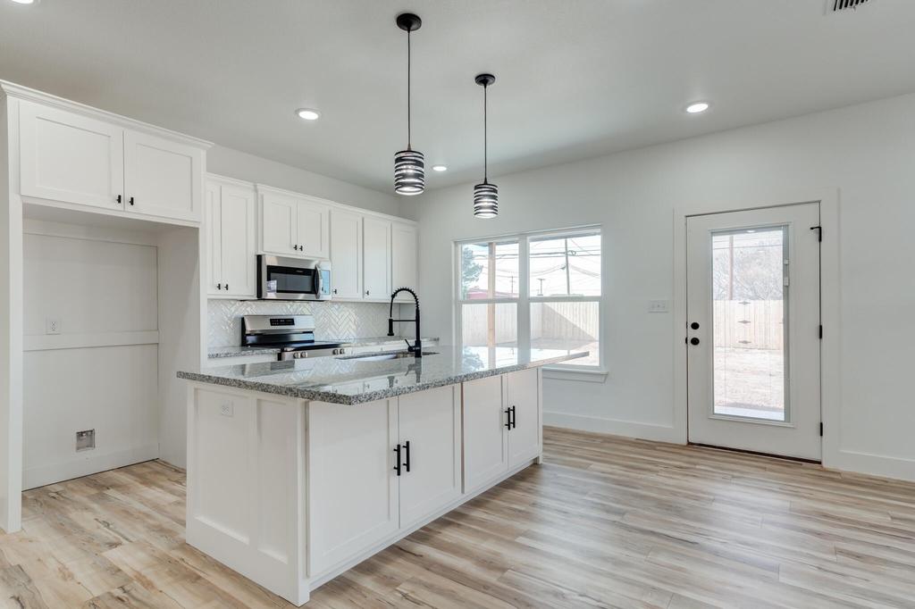 This charming 3/2/2 new construction in Abernathy offers the perfect blend of comfort and style in a family-friendly community just north of Lubbock with highly rated schools. The home features an excellent open floor plan with tall ceilings and luxury vinyl flooring throughout. The kitchen boasts granite countertops, stainless steel appliances, black hardware accents, and an island with bar seating. Enjoy outdoor living with a large covered patio and spacious yard--ideal for family time and entertaining. A wonderful opportunity to enjoy quality new construction in a welcoming small-town setting. Call today to schedule a showing!