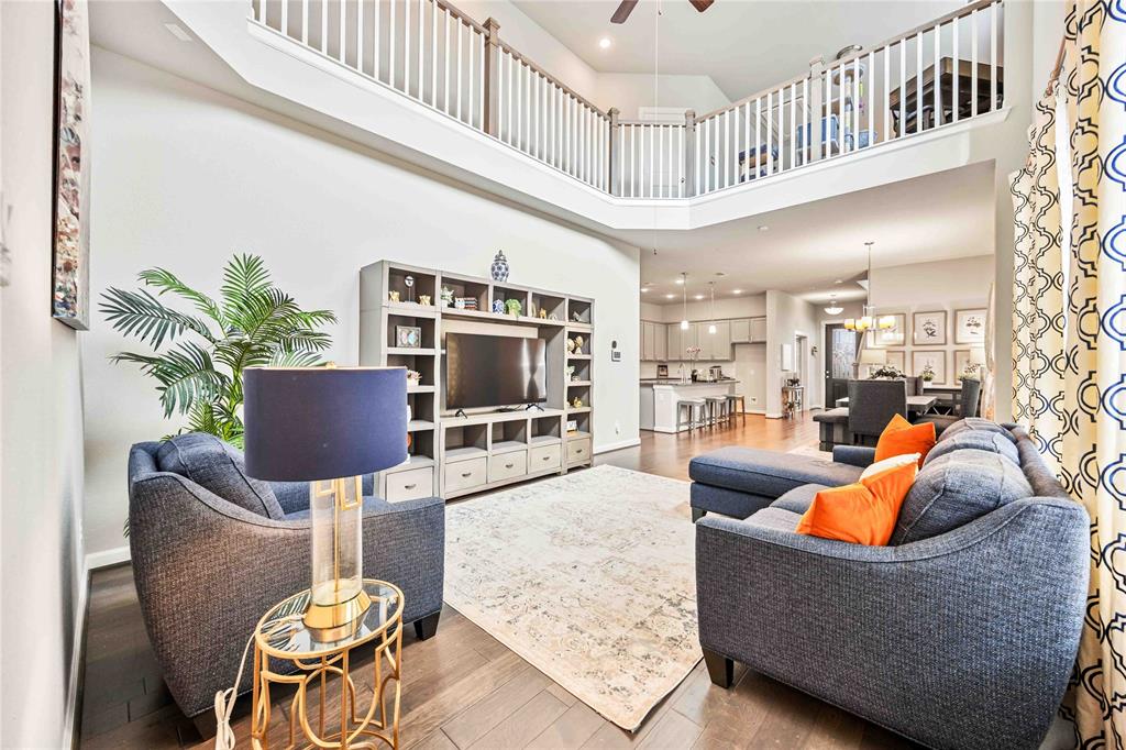 Discover this beautifully crafted 2019 David Weekley home with 3 bedrooms, 2.5 baths, and a private office in a desirable gated community. Offering a 3-car garage (2-car plus tandem) with an extended driveway, this home provides ample parking and storage space. The open-concept living area boasts a grand ambiance with 20-foot ceilings that flow seamlessly into an open concept kitchen and dining area. Upstairs, you'll find all three bedrooms and a spacious game room. The primary bedroom features an oversized walk-in shower and a large walk-in closet. Outside, enjoy a paved patio and a spacious green yard, ideal for relaxation or play. This home grants access to the Cinco Ranch community pool and is zoned to top-rated schools: Jenks Elementary, Tays Junior High, and Tompkins High School.
