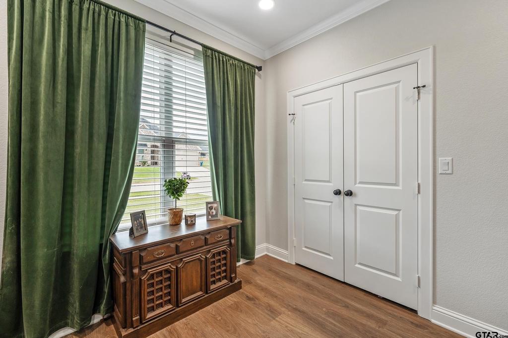 Gorgeous and immaculate, this like-new 2022 build in Bullard ISD offers stylish living with thoughtful custom touches throughout. Featuring 4 bedrooms, 2.5 baths, and a 2-car garage, the open floorplan is both functional and inviting. The kitchen flows seamlessly into the dining and living areas and is equipped with stainless appliances, quartz countertops, a pantry, custom glass-front cabinetry, and an island with bar seating