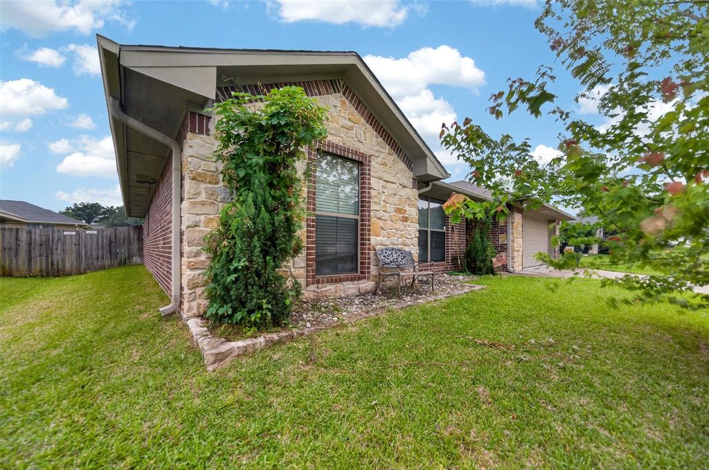 Where charm meets comfort in desirable Running Meadows North! Welcome home to this beautifully maintained property in the heart of Flint, offering the perfect combination of style, warmth, and functionality. Step inside to find inviting stained concrete floors that flow throughout the main living areas, blending durability with timeless appeal, while plush carpet adds comfort in each bedroom. The spacious living room welcomes you with a cozy corner woodburning fireplace with a gas starter - ideal for chilly evenings or relaxed gatherings. The thoughtfully designed U-shaped kitchen features stainless steel appliances, a pantry for extra storage, and beautiful butcher block–style countertops that add natural texture and charm. A window over the sink fills the space with sunlight, and the breakfast bar provides the perfect perch for casual dining or morning coffee. The adjoining dining area overlooks the backyard, creating a seamless flow for entertaining. The split floor plan ensures privacy, with two bedrooms and a full bath on one side of the home and a spacious primary suite tucked away on the other. The primary retreat features another coffered ceiling, direct access to the patio, a large ensuite with a corner soaking tub, separate walk-in shower, and an oversized walk-in closet that will impress. Outside, enjoy the fenced backyard with a covered patio ideal for summer cookouts, along with a sprinkler system to keep your lawn lush and green. Located just minutes from South Tyler shopping, dining, and highly rated schools, this home combines comfort, quality, and convenience in one irresistible package.
