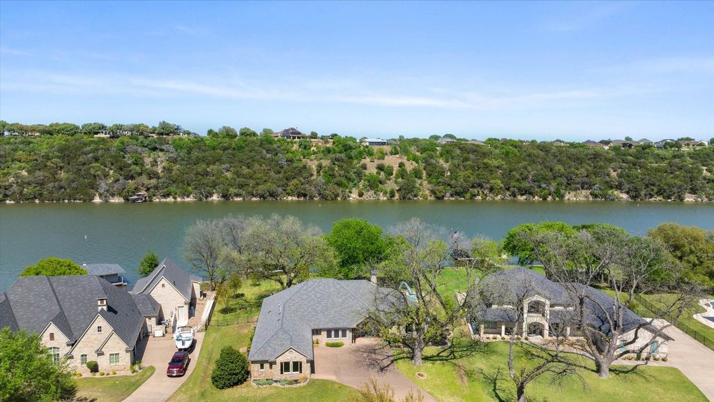 Stunning Total Renovation on the Main Body of Lake Granbury Experience unparalleled luxury in this masterfully reimagined estate, situated on 1.47 private acres within the exclusive gated community of The Peninsula. No expense was spared in this complete, top-to-bottom renovation, where every inch of the 3,523 sq. ft. floor plan has been touched. From the newer roof to the exquisite new wood flooring and designer LED lighting throughout, this home offers the feel of new construction with the established charm of lakefront living. The heart of the home is a chef’s dream featuring new premium countertops, a massive island, and high-end built-in appliances. Each of the three spacious bedrooms serves as a private retreat with fully updated ensuite baths, including all-new custom showers, tubs, and fixtures. The primary suite remains the crown jewel, offering a private fireplace and a spa-like bath experience. The outdoor oasis is designed for ultimate relaxation and entertainment. The heated gunite pool was fully redone recently and features elegant water features and a cooling misting system. For the boating enthusiast, the private dock on the main body of the lake is equipped with double boat lifts and a pest-control misting system for bug-free evenings on the water. Buyer to verify accuracy of all information including room & lot sizes, schools, taxes, amenities, etc. Neither Seller nor Listing Agent make any warranties or representation as to accuracy.