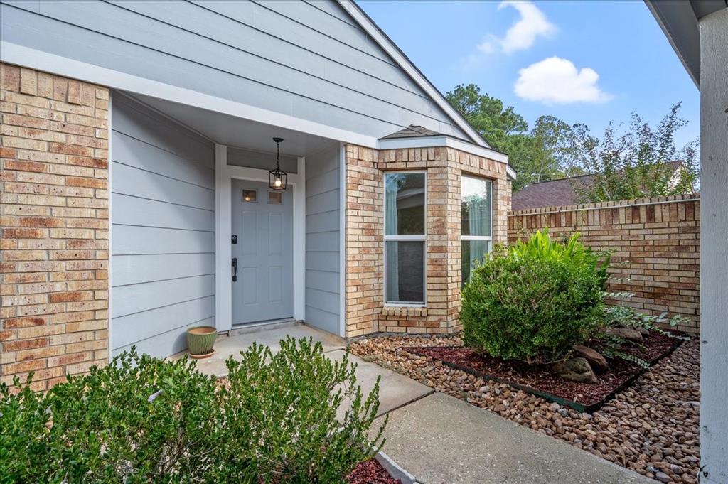 Welcome to the cutest home in The Woodlands! 71 Wind Whisper Ct. is a true gem. Upon entering you're greeted by a private courtyard with the home secluded behind a privacy wall. The garage is open to create an additional outdoor area and includes storage rooms. The home is a perfect hideaway from the world. This retreat offers 2 full bathrooms and 2 bedrooms. The living spaces open to an inviting deck adorned with cafe lights for a relaxing ambiance. Inside the primary bedroom is an updated bathroom with an oversized shower. You'll love the natural light and soft paint that make this home an absolute find! We know this property will not last, so call our office to schedule your showing today!