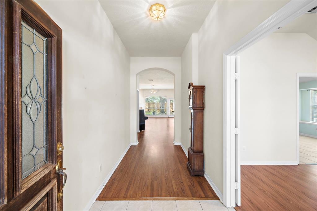 Welcome to this single story 3-bedroom, 2-bathroom home, nestled in a peaceful cul-de-sac on a corner lot in the desirable community of Pecan Lakes. This property offers comfort and convenience with vinyl and tile flooring throughout for easy upkeep and durability. The layout features an open kitchen area that flows into a living room space, ideal for entertaining or family gatherings. A study off the entry provides the perfect space for a home office, dining room, or playroom. Outside, mature trees surround the neighborhood, offering a tranquil setting. This home is just steps away from the community pool, park, and playground—great for family fun and relaxation. This home is being sold as-is. While it may require some updates, it offers a fantastic opportunity for buyers to personalize the space and make it their own. With its open layout, desirable location, and potential for improvement, this home is a true gem.