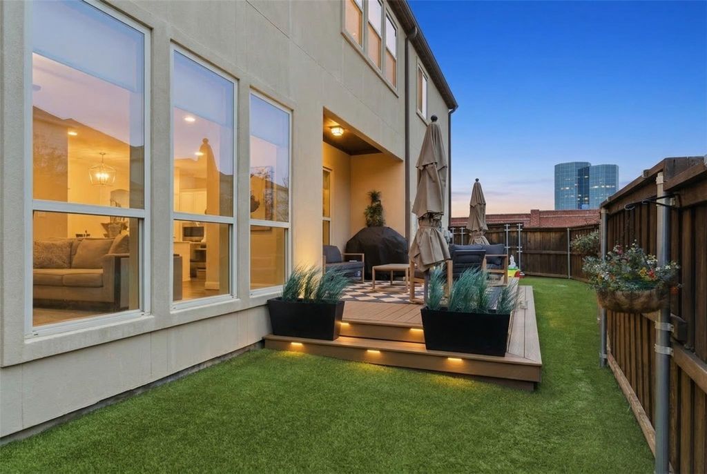 Elegant two-story residence in gated Vue Las Colinas, connected by golf cart path the Ritz-Carlton and Nelson Golf & Sports Club. Situated on a premium corner lot with a rare side yard, this 4-bedroom, 3.5-bath home offers dual master suites one on each level, and 2,496 sqft of thoughtfully designed space. The gourmet kitchen features white cabinetry, tumbled stone backsplash, oversized island with bar seating, gas cooktop, and stainless appliances. Rich hardwood floors, plantation shutters, and vaulted ceilings throughout. Upstairs game room with wet bar, walk-out terrace, and generous secondary bedrooms. Outdoor living includes a covered patio, NEW composite deck with LED step lighting, and NEW artificial turf—low-maintenance luxury. Tankless water heater, smart home system, and two-car garage with overhead storage. Walk to Toyota Music Factory, Lake Carolyn, and the Urban Center. Minutes to DFW Airport and Downtown Dallas
