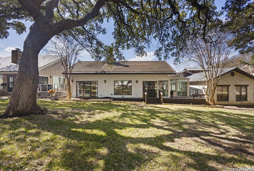 One story home sitting on the 3rd hole of the Live Oak Golf Course. Homes like this don't come on the market often! This thoughtfully remodeled home offers the perfect blend of comfort and sophistication in one of Texas Hill Country's most sought-after communities. Step inside to discover three well-appointed bedrooms including an office, spacious primary bedroom, complemented by two full bathrooms featuring modern fixtures and finishes. The recent full remodel has transformed this residence into a contemporary haven while maintaining its timeless charm. Outdoor living takes center stage with a serene courtyard perfect for morning coffee or evening gatherings. Golf enthusiasts will appreciate the prime location alongside the course, with pathway near home to get straight to the Clubhouse, no need to go to main street to access. Offering both scenic views and convenient access to tee time. The private hot tub provides a luxurious retreat for relaxation under the stars, while the garden