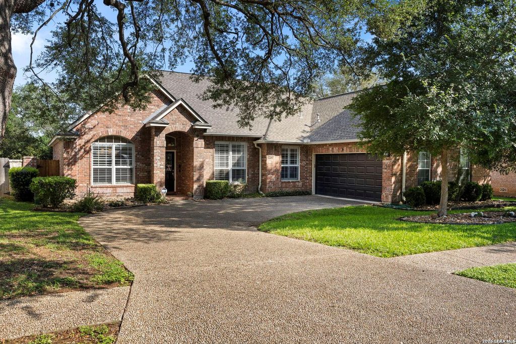 Stunning one story home in gated Oakwood! Home features an open floorplan, high ceilings, fireplace, multiple living and dining areas, and abundant natural light! The home has been meticulously well maintained. Updates include new carpet in 3 secondary bedrooms (April 2026), carpet in primary bedroom, light fixtures in kitchen, living, and dining rooms, and smoke detectors(2022), water heater and garbage disposal and window shutters(2021), new roof, gutters and garage door(2020), and water softener(2018). Kitchen features breakfast bar, granite counters, smooth cooktop and stainless appliances (refrigerator conveys)! Excellent curb appeal with side entry garage and mature trees. Conveniently located near Huebner and 1604.