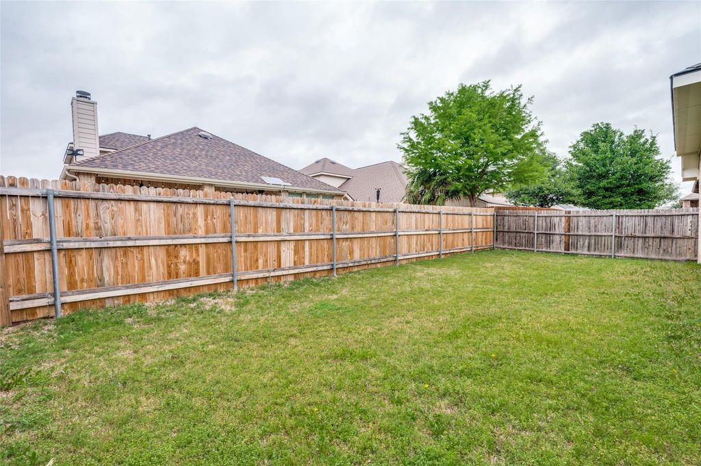 Welcome to this beautiful fresh new paint single-story home located in the highly sought-after Frisco ISD, nestled in the desirable Sunset Pointe community. This well-designed residence offers 3 spacious bedrooms, 2 full bathrooms, and a 2-car garage, combining comfort, functionality, and style. A charming front porch invites you in, where you’re greeted by a thoughtfully laid-out floor plan. To the left of the entry is a private home office with elegant French doors—perfect for remote work or a quiet retreat. On the right side, you’ll find two secondary bedrooms along with a versatile flex space, ideal for a playroom, study area, or additional lounge. The heart of the home features an open-concept kitchen and living area, perfect for both everyday living and entertaining. The kitchen boasts an oversized island, granite countertops, stainless steel appliances, and abundant storage. The living room is filled with natural light and anchored by a cozy fireplace, creating a warm and inviting atmosphere. The spacious primary suite offers a relaxing retreat, complete with a generously sized bedroom and a luxurious ensuite bathroom featuring a garden tub, separate shower, dual vanities, and a large walk-in closet. Step outside to enjoy the oversized covered patio—perfect for outdoor dining or unwinding—overlooking a nicely sized backyard. Residents of Sunset Pointe enjoy access to a master-planned community with parks, a community pool, and convenient walking distance to the elementary school. Ideally located near shopping, dining, PGA headquarters, and the upcoming Universal Kids Resort, this home truly offers the best of comfort and convenience.
