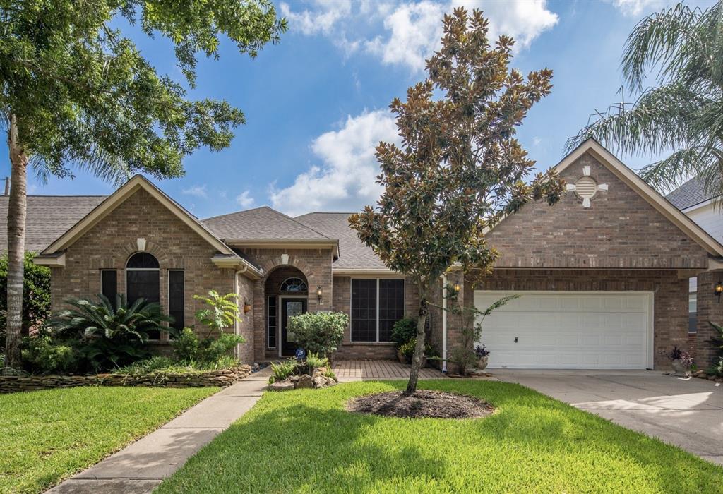 This beautiful one story home, 4 beds/2.5 baths/3 cars garage, is in a gated community, with a green open walking/biking area over the backyard for your privacy and leisure. The amazing home has fresh paint and hardwoods flooring throughout. The master suite has a sitting area with beautiful bay window overlooking the gorgeous tropical garden. The kitchen has granite counters, 42-inch cabinets, and stainless steel appliances – Refrigerator/Washer/Dryer included. Spacious family room has fireplace. The extra 200 soft sunroom, surrounded by the tropical garden, makes this property total over 2810 sqft. Best of all, the installed solar panels will save your bill - Relax outside, enjoy the covered patio and walk in the shadows in the tropical garden. A 6 zone sprinkler system is included! The home has quick access to shopping centers, to great Cinco Ranch schools, to I-10, 99, and within walking to the community amenities. A must see to appreciate the detail. It never flooded.