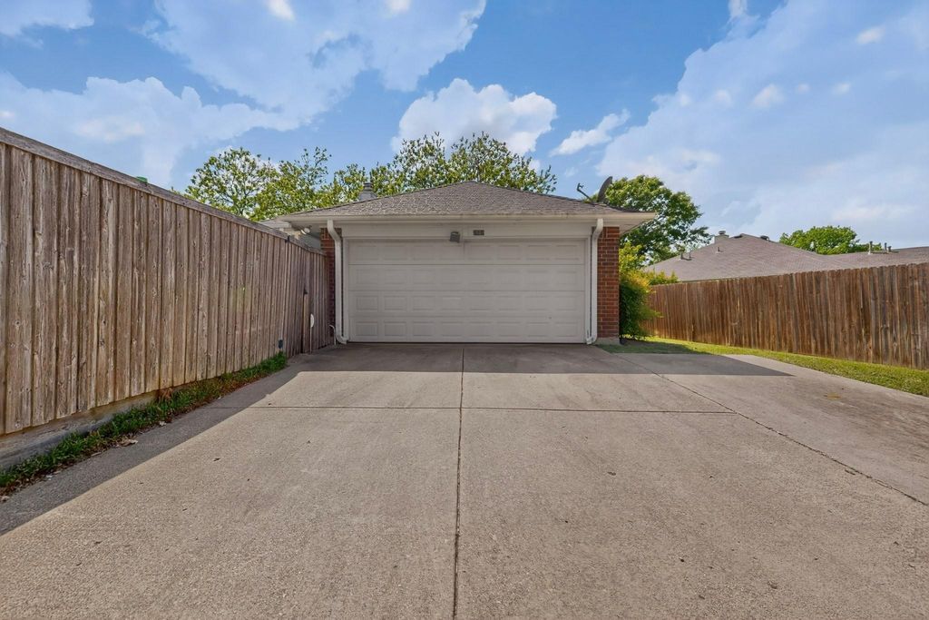 WOW—this one is going to go FAST!!!! Nestled on a quiet, oversized cul-de-sac lot, this charming single-story home offers space, versatility, and incredible potential. From the moment you arrive, you’ll love the lush landscaping and welcoming curb appeal. Step inside to find a flexible floor plan featuring formal living and dining areas—perfect for a home office, second living space, or whatever fits your lifestyle. The heart of the home is the huge open kitchen with a serving bar that flows seamlessly into an expansive second living area, complete with vaulted ceilings, a stunning see-through fireplace, and a wall of windows overlooking your private backyard retreat. The backyard is truly an entertainer’s dream! Enjoy a spacious 16x14 covered patio, sparkling in-ground pool, and still plenty of green space for play, pets, or gardening. Additional features include a storage building, board-on-board fence, and full sprinkler system. Inside, all bedrooms are generously sized and feature walk-in closets. The primary suite offers double vanities and a separate tub and shower for a relaxing retreat. If you’re looking for a fantastic opportunity—this home just needs a little shine to truly sparkle! Located in a quiet, established neighborhood with easy access to I-635, I-30, I-80, and I-20—less than 10 minutes away. And best of all… NO HOA! Don’t miss your chance—schedule your showing today!