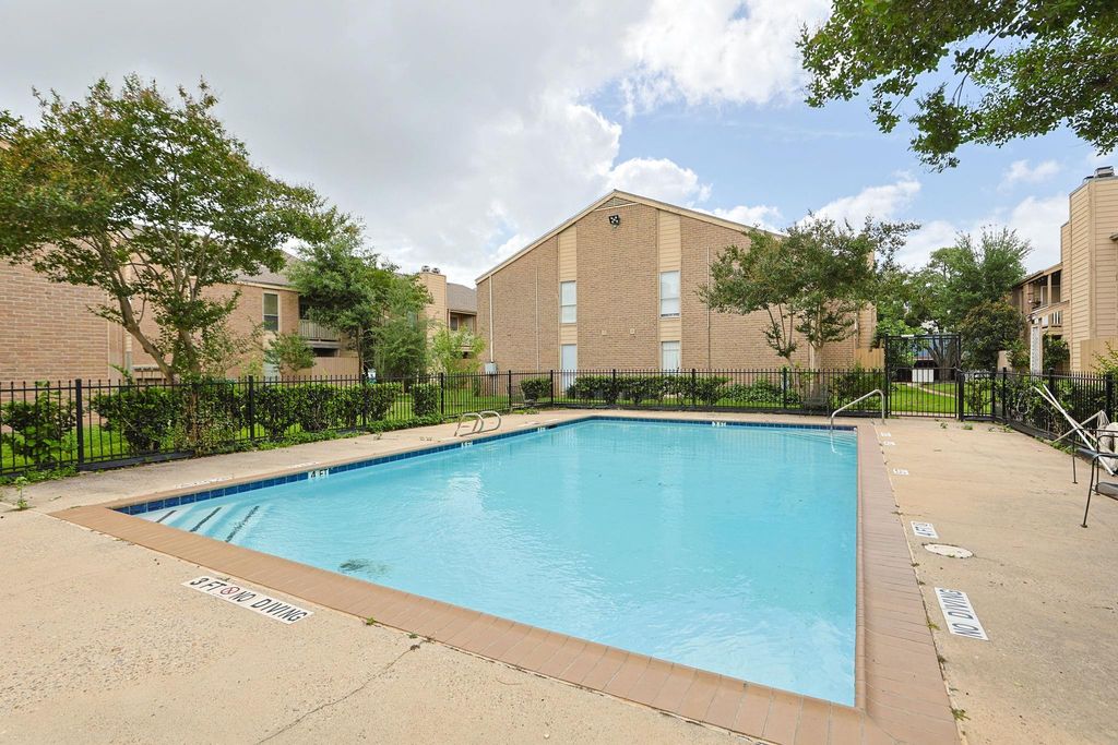 TRAVERTINE FLOORING THROUGHOUT!! STACKABLE WASHER AND DRYER INCLUDED. Great Location with easy access to 59 South and Sam Houston Toll road. Gated community with covered parking, tennis courts and pool. This condo is located on the first level and corner unit!!