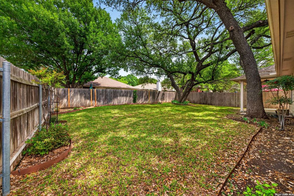 Move-in ready 1 story, 3 bed, 2 bath, with study, corner lot home in Oakmont Downs! Open floor plan features wood flooring throughout, no carpet, updated kitchen with quartz counters, farmhouse sink, and modern appliances. Spacious primary suite with walk-in closet, double vanity, garden tub, and separate shower. Beautifully landscaped yard with covered patio, sprinkler system, mature trees, and strong curb appeal. Study is adjacent to Kitchen and could be converted to Formal Dining. Close to USAA and UTSA.