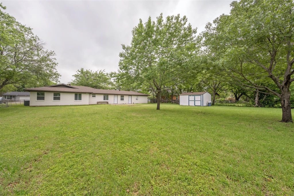 Beautifully updated, move-in ready home on a large lot with no HOA in the heart of North Richland Hills—offering modern updates, timeless charm, and a warm, welcoming feel. Such inviting curb appeal! This home features a freshly painted exterior, a spacious covered front porch with cedar accents, and recently installed energy-efficient windows that fill the home with natural light. Major system updates include a newer roof (2024), new water heater (2024), and updated PEX plumbing for added peace of mind. Inside, you’ll find new luxury vinyl plank flooring, updated ceiling fans, and a comfortable, functional layout with both an eat-in kitchen and a separate dining room—perfect for everyday living or gathering with family and friends. The fully renovated kitchen offers new cabinetry, stainless steel appliances, quartz countertops, designer backsplash, and updated hardware, creating a space that is both stylish and practical. The primary suite provides a private retreat with an ensuite bath and walk-in shower, while the oversized hall bath features a double vanity for added convenience. Set on a large, park-like lot, the backyard offers plenty of space to relax, entertain, or enjoy the outdoors, complete with a storage building. An oversized two-car garage with an expansive storage closet adds even more functionality.