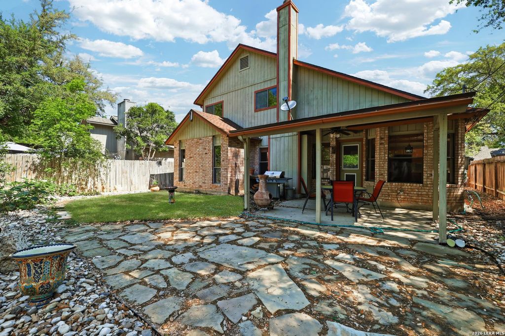 Nestled in the highly desirable Castle Hills Forest community, this beautifully maintained 3-bedroom, 2.5-bath, two-story home with 3 living areas offers the perfect blend of comfort, space, and location. Surrounded by mature trees in a quiet, wooded neighborhood within NEISD, the property provides a peaceful retreat while remaining conveniently close to NW Military Highway and Loop 410. One of the home's most unique features is its direct backyard gate access to Phil Hardberger Park-ideal for outdoor enthusiasts, walkers, and nature lovers. Inside, you'll find an inviting open floor plan with soaring trey ceilings and abundant natural light streaming through numerous windows. The first floor features durable ceramic tile flooring throughout. A cozy faux fireplace adds charm to the main living space. The primary suite is conveniently located downstairs, offering privacy and comfort with a ceiling fan, plush carpeting, a large walk-in closet, and an en-suite bath featuring double vaniti