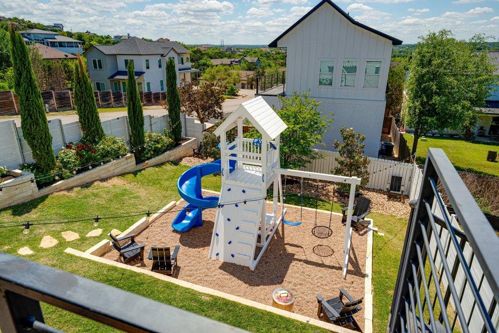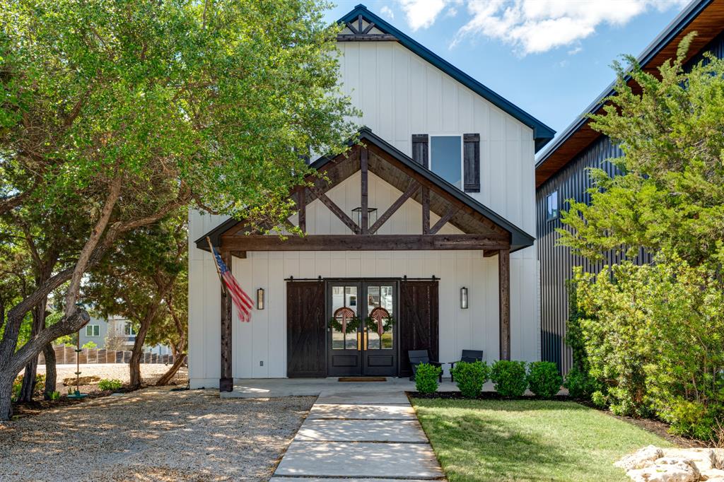 Experience refined Hill Country living in this stunning modern farmhouse, where thoughtful design meets elevated comfort. This 3-bedroom home with a spacious playroom or flex space offers the perfect blend of functionality and style, ideal for both everyday living and entertaining. Hand-selected by an interior designer, the upgrades shine throughout, featuring rich engineered hardwood floors, soaring ceilings, and an abundance of natural light that fills every corner of the home. Curated details include designer Visual Comfort & Co. lighting throughout, adding a sophisticated and cohesive aesthetic. The gourmet kitchen is a true showpiece with elegant marble countertops, complemented by matching marble finishes in the luxurious primary bathroom, while secondary baths showcase sleek quartz surfaces. Step outside to your private retreat, fully landscaped and irrigated for effortless maintenance. Enjoy evenings under automatic shades while taking in breathtaking Hill Country views that stretch for miles, all enhanced by a built-in outdoor sound system—perfect for entertaining or unwinding in style. With no restrictions and a low tax rate, this property offers both freedom and value. Located within the highly acclaimed Lake Travis Independent School District, this home combines modern luxury with exceptional convenience.