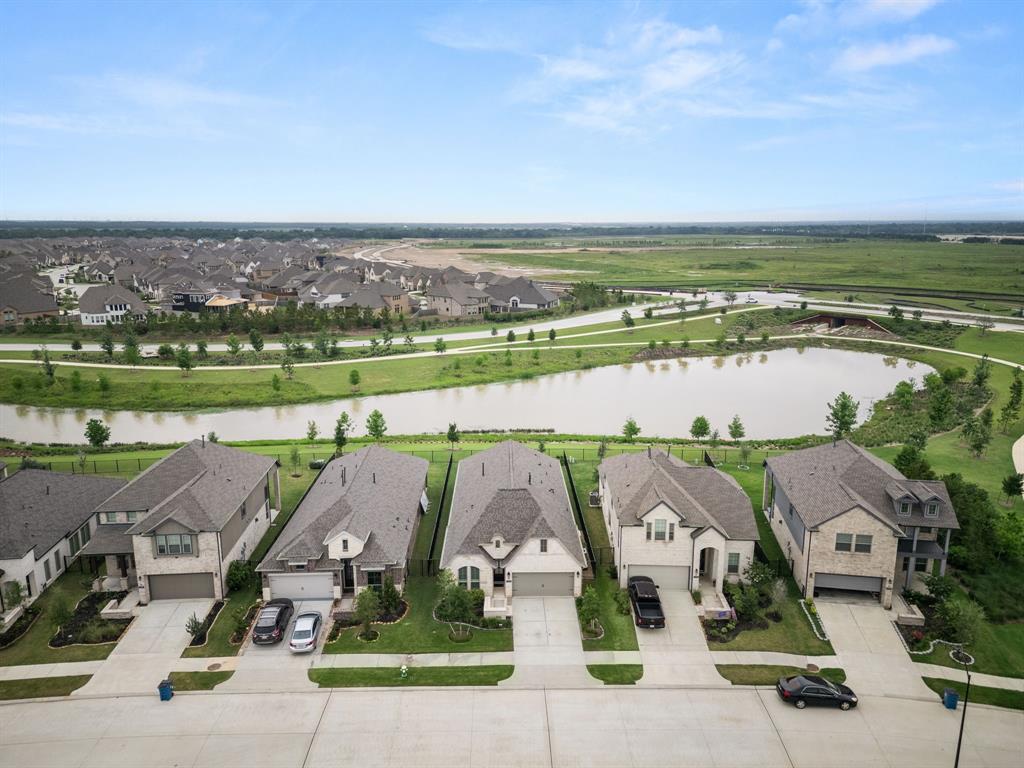 STUNNING WATERFRONT 2022 Perry Home in Prairieland Village, zoned to CY-FAIR ISD schools!! FULLY updated home w/ SLEEK finishes & GREAT views! Home includes a WHOLE HOME GENERAC! NEW selections include: interior paint, Luxury Vinyl flooring, 36" cooktop, fixtures, tubs, toilets & Epoxy on garage floor. This GORGEOUS home boasts an extended entry w/ a 12-ft ceiling leading to an open kitchen, dining area & family room with 10-ft ceilings throughout. The kitchen features a corner walk-in pantry & a large island. The family room showcases a wall of windows, as does the primary suite, which also has a 10-ft ceiling. The primary bath includes dual vanities, a garden tub, a separate glass-enclosed, ENLARGED shower & a large walk-in closet. Use the 4th bedroom as a home office, if preferred. Enjoy outdoor living on the covered backyard patio. Additional features include a mud room off the two-car garage. Security cameras & monitor will convey. Bridgeland amenities galore! DON'T MISS THIS ONE!