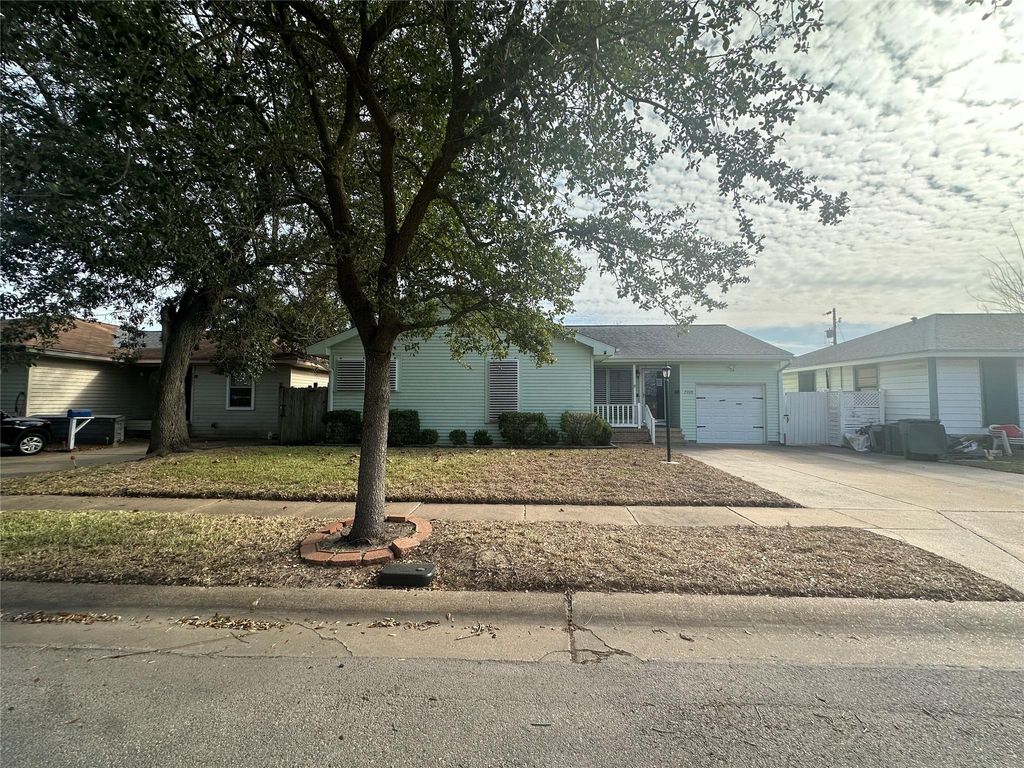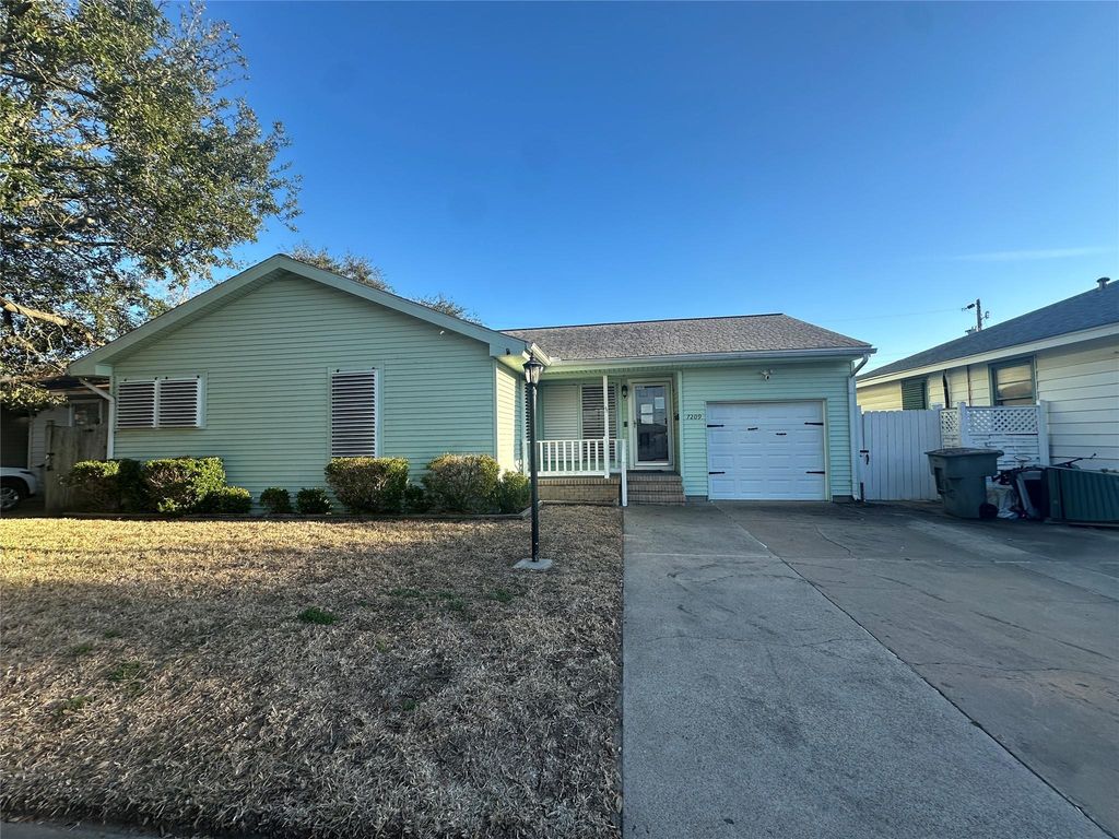 Three-bedroom, two bath home with a one car garage and an inground pool with outdoor bathroom and covered area.