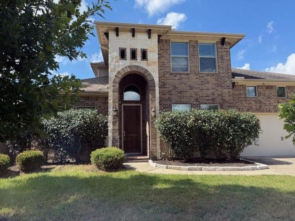 Located in Albury Trails Estates, this home offers five bedrooms and three and a half baths. The kitchen opens to a family room with a fireplace. Both the primary bedroom and another bedroom are on the first floor. Features include tile and carpeted floors, a study, a gameroom, and a primary bath with a jetted tub and separate shower.
