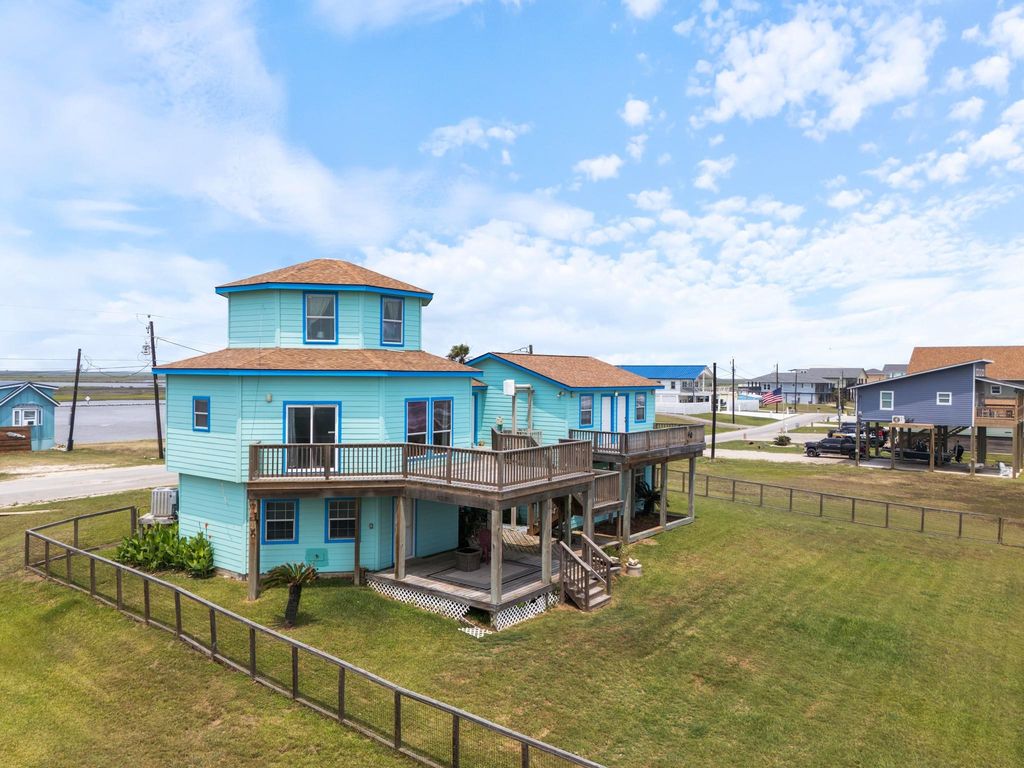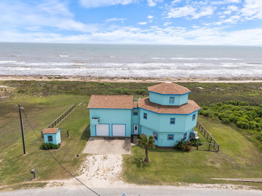 Experience coastal living right in Sargent, Tx with this 3-bedroom, 4.5-bath, three-story beachfront home. This property offers spacious living across multiple levels-perfect for entertaining and hosting guests. The ground level features a versatile living area complete with a kitchenette, half bath, laundry space, and direct access to the two-car garage. A charming spiral staircase leads to the main living level has an open-concept kitchen, dining, and living area creating the perfect gathering space. This floor also includes 3 full baths and two bedrooms, one being the primary suite with its own private en suite bath. Both bedrooms offer direct access to decks overlooking the Gulf. Continue up the spiral staircase to the third floor, where you’ll find a private bedroom with a full bath—making the perfect guest suite with exceptional views. With multiple decks, breathtaking views, cargo lift and flexible living spaces, this home is ideal as a full-time residence or vacation getaway.