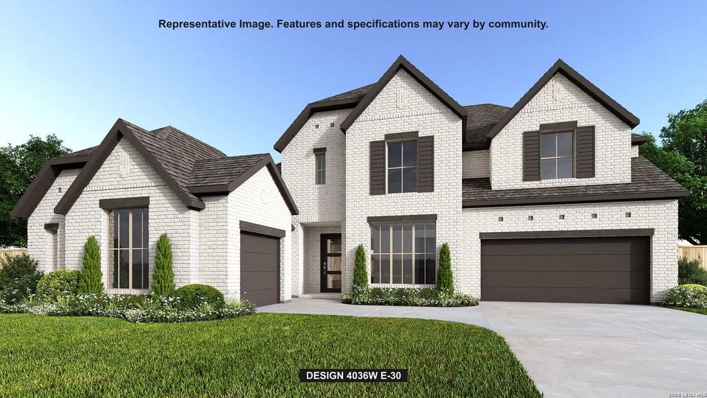 Featured on a half acre homesite. A large front porch opens into a grand two-story entryway that boasts a curved staircase. A private guest suite is located off the entrance and features a private hallway to the one-car garage. Adjacent to the guest suite is the formal dining room. As you walk past the stairs which feature a bonus storage space, you enter the grand family room which boasts tall ceilings, a wood mantel fireplace, and sliding glass doors. French doors lead into the home office right off the living space. An island with built-in seating, a 6-burner gas range top, walk-in pantry, and butler's pantry that leads into the dining room completes the kitchen. The morning area is embraced by two walls of windows and allows access to the covered backyard patio. The primary bedroom boasts a tray ceiling and wall of windows. French doors lead into the primary bathroom which boasts dual vanities, a freestanding tub, glass enclosed shower, and large walk-in closet. Upstairs you are gr