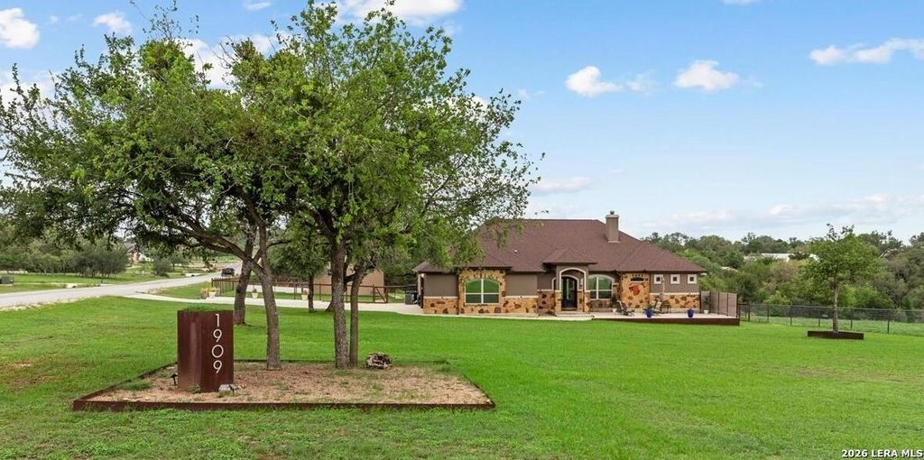 OPEN HOUSE SATURDAY, MAY 2nd 1-3pm Welcome to 1909 Hunters Cove, a private Hill Country retreat set on 1.18 acres in the highly sought-after River Chase community in New Braunfels, Texas. Surrounded by mature trees and showcasing scenic Hill Country views, this thoughtfully updated property offers the perfect blend of luxury, comfort, and space-ideal for buyers seeking privacy, entertaining potential, and a true lifestyle upgrade. Inside, the home spans 2,302 square feet with 3 bedrooms and 2 bathrooms, designed with both everyday living and elevated entertaining in mind. The chef's kitchen serves as the centerpiece of the home, featuring a large quartzite island, high-end appliances, gas cooktop, built-in icemaker, and ample prep space-perfect for hosting gatherings or creating memorable meals. High ceilings, expansive windows, and a warm fireplace create an inviting and light-filled living space, while new paint and carpet provide a fresh, move-in ready feel. The spacious prim
