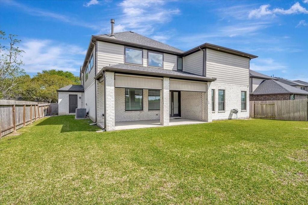 Stunning home in highly sought after Friendswood ISD featuring a gated courtyard entry and 3-car garage-This beautifully designed home offers an open-concept floorplan w/soaring ceilings, walls of windows and a perfect blend of modern/traditional finishes throughout-The chef’s kitchen showcases quartz countertops, double ovens, an abundance of cabinetry and a large island that opens seamlessly to the spacious living area ideal for everyday living and entertaining-Custom built-ins and a sleek fireplace create a striking focal point in the main living space-The private primary suite is located downstairs and offers a relaxing retreat-Upstairs features a game room and dedicated media room w/open railing views below-Additional highlights include a formal dining room, private office with French doors, tankless water heater and whole-home Generac generator-Enjoy outdoor living on the oversized covered patio w/plenty of space to relax or entertain-Full yard sprinkler system-Security cameras